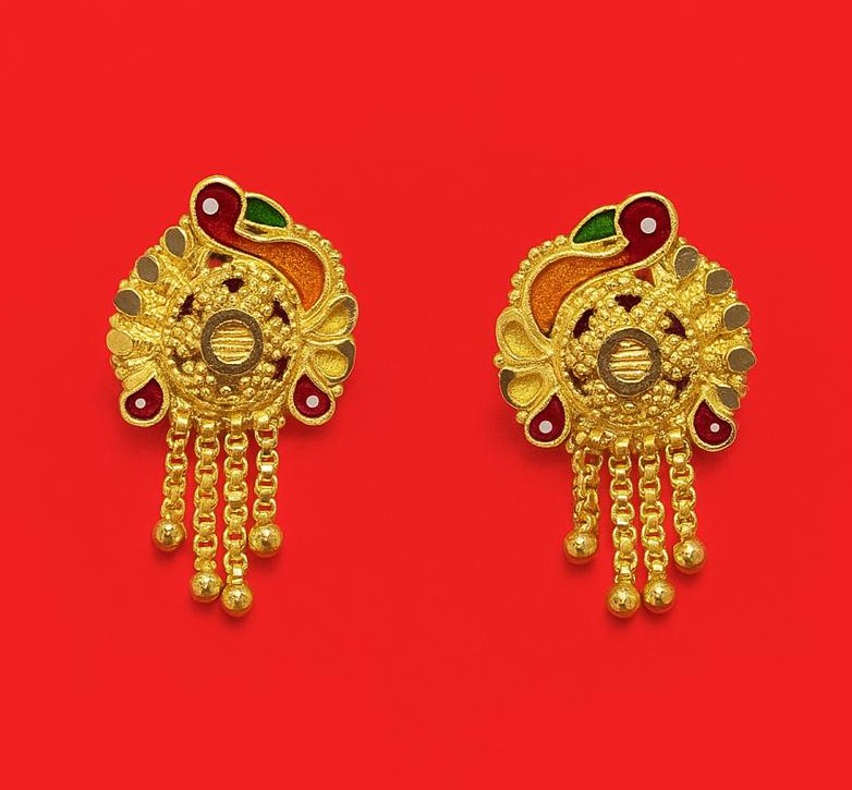 BENTEX EARING WITH  RED AND ORANGE MINA