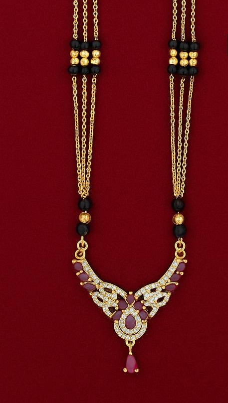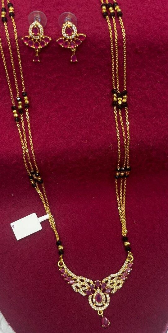RED STONE MANGAL SUTRA WITH PAIR OF EARING