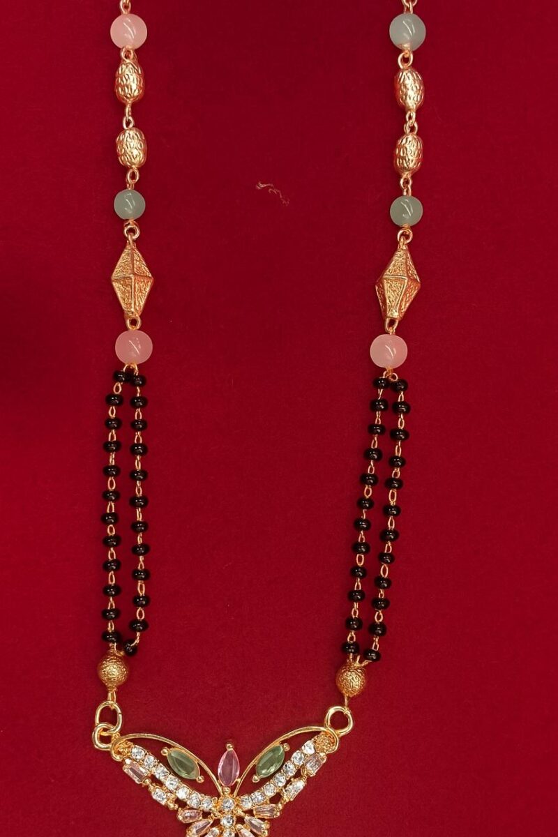 SHORT MANGAL SUTRA WITH GREEN, RED AND CRYSTAL STONE
